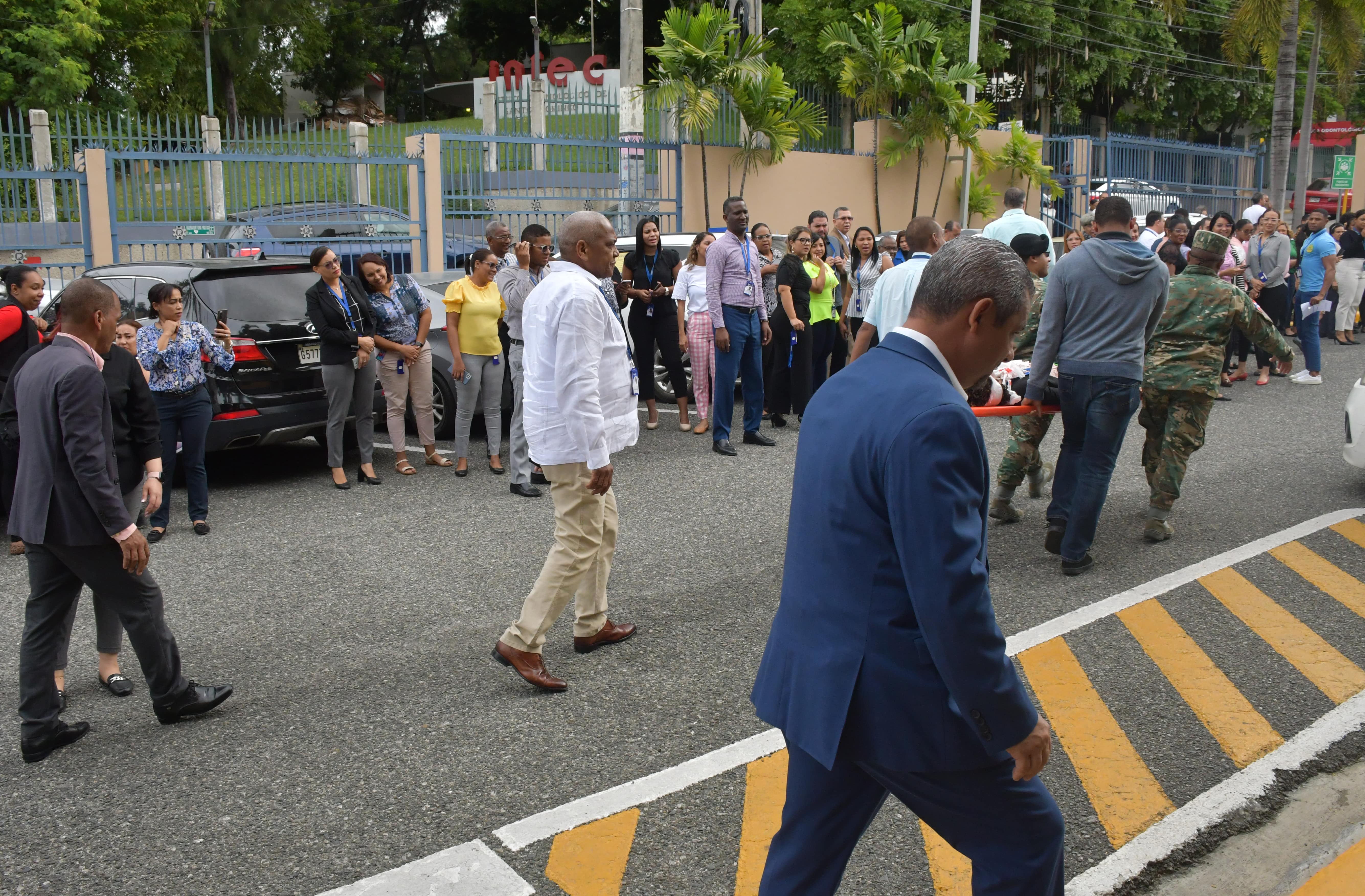 En el acto de evacuación participaron los colaboradores y funcionarios de la entidad, en donde se llevó a cabo una actividad para el plan de emergencia, a través de esto, se observó una simulación con una colaboradora herida, encima de una camilla de rescate el cual la sostuvieron dos militares y dos colaboradores de la entidad.